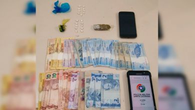 A mulher teria se evadido para dentro da residência, mas foi capturada juntamente com seu companheiro. Feita revista pessoal, foi encontrado no de bolso G., 9 pedras de crack e R$ 93 em espécie. Já com A., 11 pedras da mesma substância e R$ 136 em espécie.