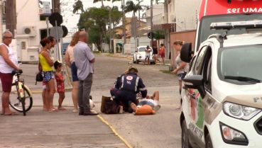 Os socorristas do Samu (Serviço de Atendimento Móvel de Urgência), prestaram atendimento ás duas pessoas que estavam na moto, que foram projetadas ao chão.