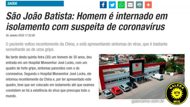 As informações falsas alegam que um homem de 30 anos, estaria internado no Hospital Municipal Monsenhor José Locks com o vírus.