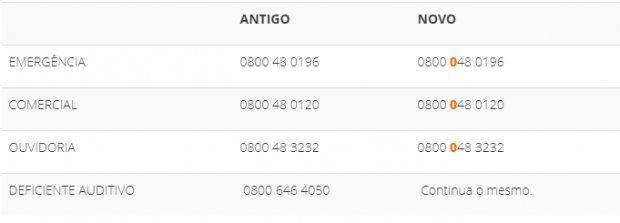 Conforme já anunciado no início do mês de agosto, os números das centrais de teleatendimento da Celesc ganharam um ZERO a mais, ficando com 11 dígitos: 0800 048 0196 (emergências), 0800 048 0120 (comercial) e 0800 048 3232 (ouvidoria). A novidade é que, a partir do próximo dia 28 de setembro, os números antigos que continuam funcionando paralelamente serão desativados. Lembrando que o número de atendimento para deficientes auditivos continua o mesmo: 0800 646 4050.