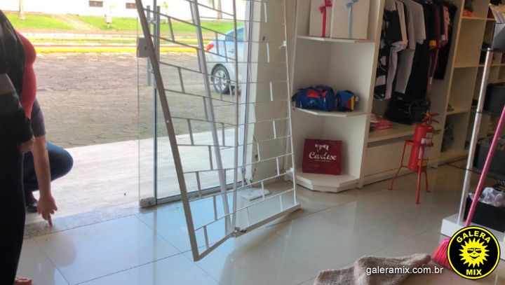 De acordo com informação da proprietária da Loja Carlise Uniformes, dois criminosos teriam arrombado a porta de vidro e quebrado a grade de proteção, por volta das 4h.