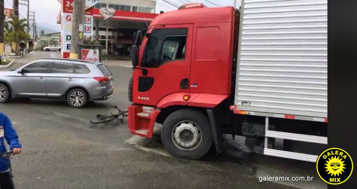 Um ciclista ficou ferido depois de colidir com um caminhão na rótula em frente ao supermercado Koch no bairro Perequê em Porto Belo.
