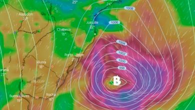 Um ciclone deve trazer ventos fortes e ondas mais altas no litoral de Santa Catarina e Rio Grande do Sul, entre esta quarta (1) e quinta-feira (2). A previsão é da meteorologista Cátia Braga.