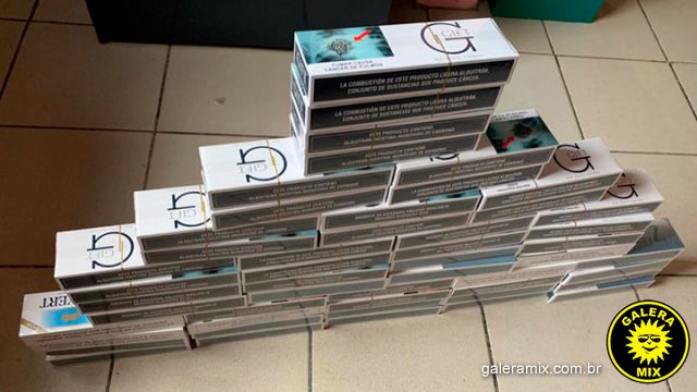 No estabelecimento foram encontradas duas caixas de papelão com maços de cigarros da marca Gift Calvert e Zen, vindo do Paraguai. No total, 500 maços foram apreendidos.