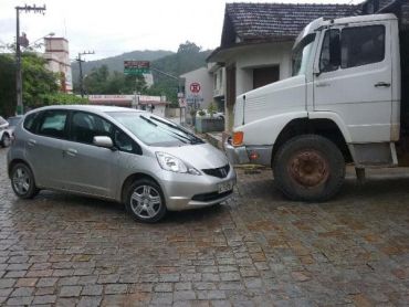 Diante das informações policiais foram ao local onde constataram o acidente envolvendo um caminhão Mercedez/Benz/L 1621 de placas de Nova Trento, conduzido por J. R e um veículo Honda/Fit de também com placas de Nova Trento, conduzido por I. W. C.
