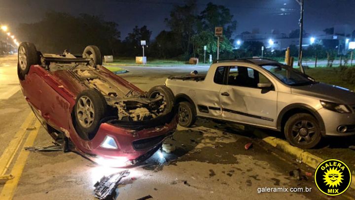 De acordo com informações de testemunhas, o automóvel Ford/Fiesta seguia pela rua 13 de Maio, quando colidiu na traseira da Saveiro e capotou.