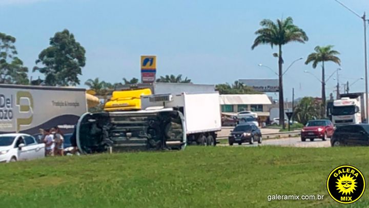 Uma colisão traseira seguida de capotamento foi registrada na BR-101 na manhã desta quinta-feira (09). O acidente aconteceu na divisa dos municípios de Tijucas e Porto Belo.