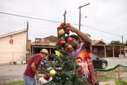 Há três anos, os moradores da Rua Esaú Bayer se unem para deixar o local mais bonito nessa época. A professora Sabrina Chagas e o esposo, Aristides Andriani Filho, iniciaram o movimento, que logo foi adotado pelos demais vizinhos.