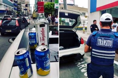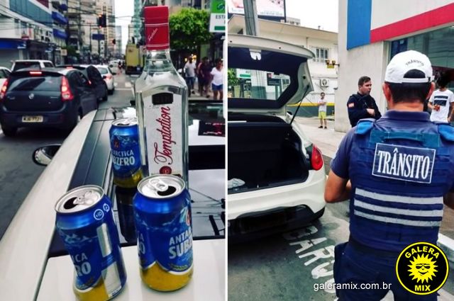 Também foi verificado que todos os integrantes do veículo, inclusive o condutor, estavam consumindo bebida alcoólica. Foi constatado hálito etílico e ofertado o teste do bafômetro ao condutor, que se recusou a fazer.