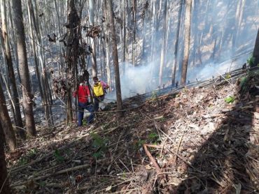 No local os bombeiros se depararam com um incêndio florestal em área de difícil acesso. Imediatamente os soldados iniciaram o trabalho para extinguir as chamas que já haviam devastado uma grande área de plantação de Eucalipto. Sem o apoio do Caminhão de Auto Bomba Tanque Resgate (ABTR), os trabalhos foram realizados com abafadores e bolsas d’agua.