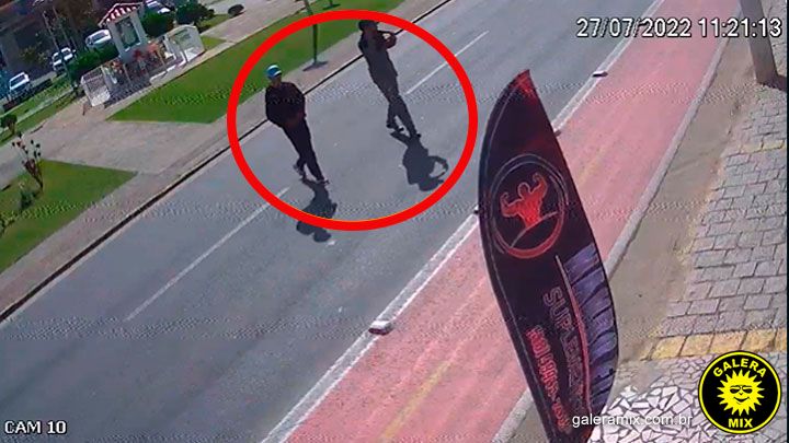 Os assaltantes aparecem caminhando na rua, usando bonés e uma blusa que estava amarrada no pescoço é erguida para esconder o rosto. As imagens já estão sendo analisadas na tentativa de identificar os ladrões.