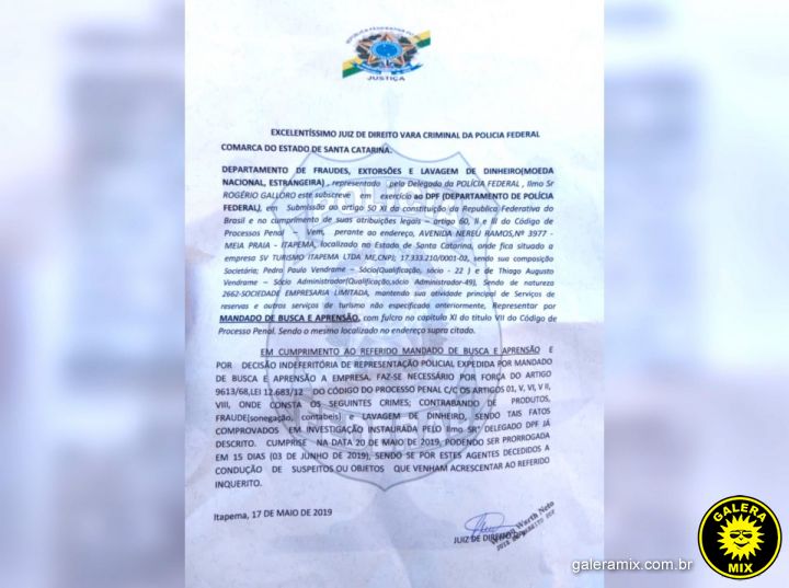 Confira o falso mandado de busca e apreensão utilizado pelos bandidos:
