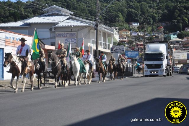 Tiveram início nos anos setenta, com objetivo de divulgar o rodeio, saindo de São José indo à Florianópolis, visitando Assembleia Legislativa, a Praça XV de Novembro, o Mercado Público e retornado à São José. Por onde passavam era uma festa o povo aplaudia os cavalarianos, levando a tradição do campo até a cidade. Atualmente a Cavalgada sai do Parque do Rodeio e entra pelos bairros de Forquihinhas, passando pela Igreja de São Francisco e marco de fundação do CTG Os Praianos, segue depois pelos bairros Flor de Nápoles e Picadas do Sul, entrando depois na SC-281, e rua de retorno aos Praianos. A cavalgada se inicia às 9h e possui duração em torno de 2h30min. Após a chegada da comitiva poderá saborear um delicioso costelaço.
