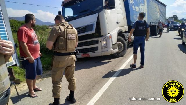 A Polícia Militar e agentes da Polícia Civil de Canelinha também participaram da ocorrência. Segundo informações a carga teria sido roubada em Imbituba. O agente ferido teve que ser encaminhado ao Hospital.