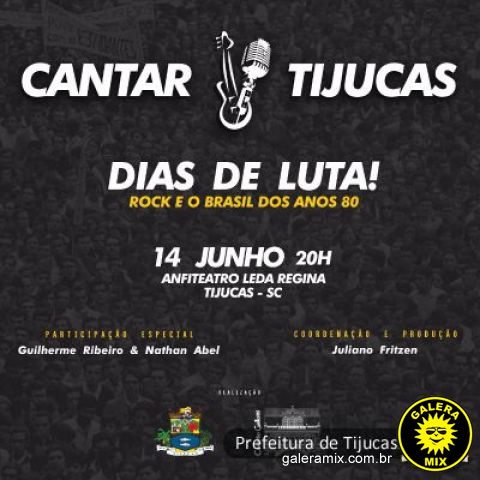No próximo dia 14, véspera de feriado de Corpus Christi, a secretaria municipal de Cultura, Juventude e Direitos Humanos de Tijucas vai realizar mais uma edição do Cantar Tijucas. O evento faz parte das atividades em comemoração aos 157 anos do município, celebrado no dia 13 de junho. Neste ano o espetáculo terá o tema: 'Dias de Luta - O Rock e o Brasil dos Anos 80'. O espetáculo será uma adaptação do livro de mesmo nome, e por intermédio de narrativas, vídeos, e das músicas executadas pela banda, vai contar um pouco mais sobre o nascimento e a ascensão do Rock Nacional a partir dos anos 80.