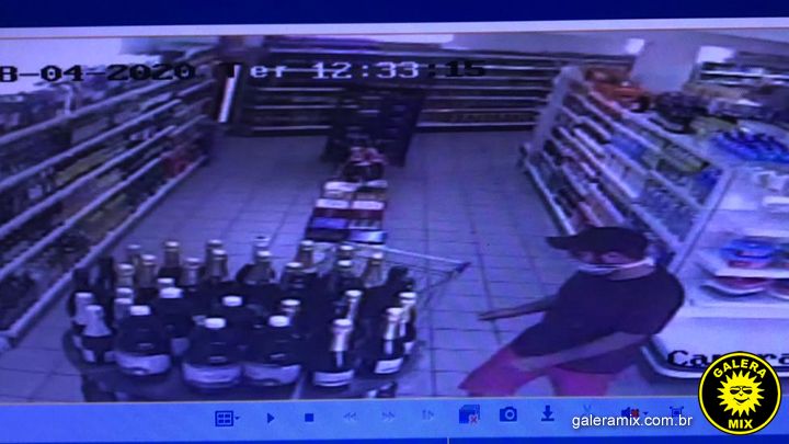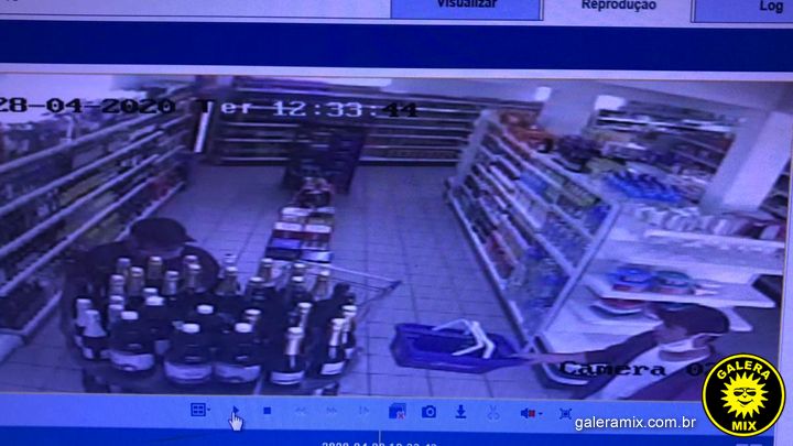 Dois homens foram flagrados furtando uma garrafa de bebida alcoólica, em um supermercado localizado em Nova Trento. A dupla usava máscaras de proteção no momento o crime.