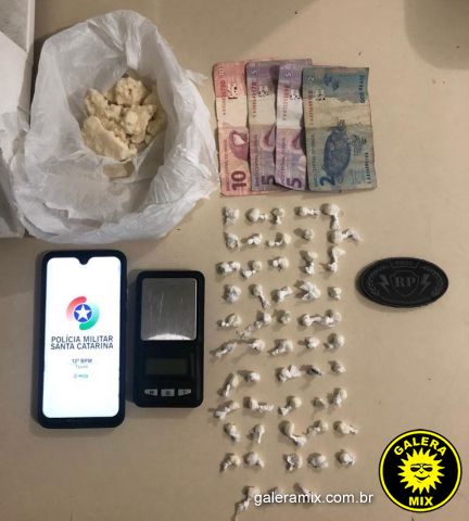 Em buscas na casa do suspeito, os militares encontraram em uma sacola, dentro de um carrinho de bebê, 77 gramas de crack, fracionadas em 53 embalagens prontas para comercialização, além de uma balança de precisão.