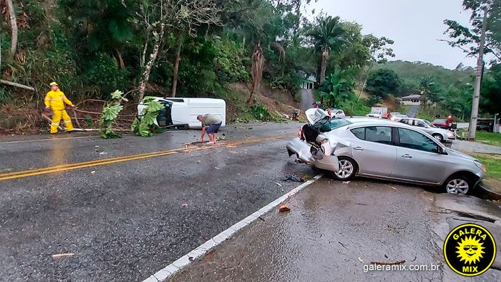Dois veículos colidiram na SC-410 após a queda de uma árvore na rodovia. O acidente foi registrado na última terça-feira (30), no bairro Rio do Braço, em São João Batista.