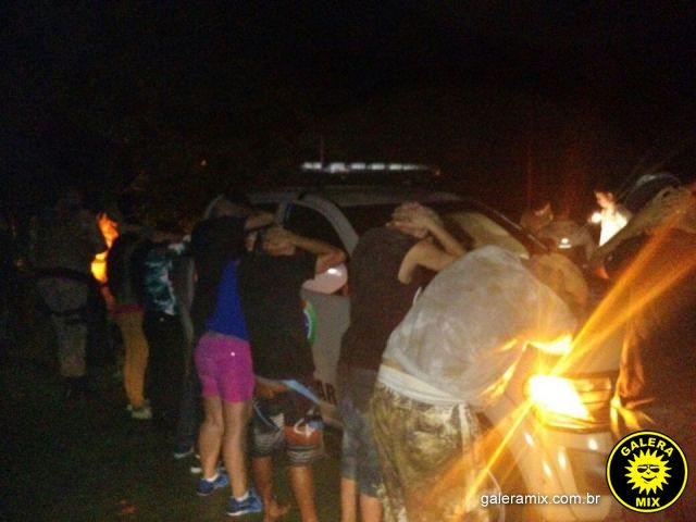 A PM realizava rondas pelo local quando avistou centenas de pessoas participando da farra. Farristas munidos de paus e pedras tentavam afugentar o animal.