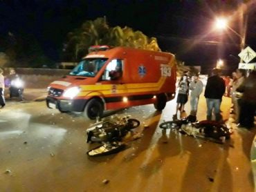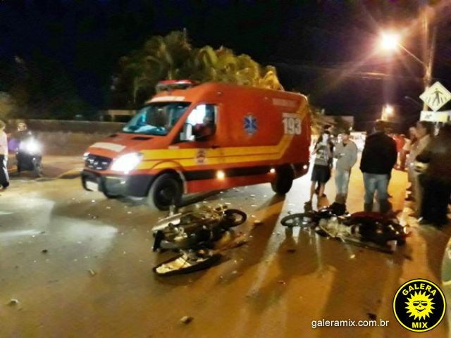 Duas pessoas ficaram feridas após as motos em que estavam serem atingidas por um veículo desgovernado, o sinistro aconteceu no início da noite desta quarta-feira (02), na Rua Tibúrcio Bozzano próximo ao supermercado Tânia, no centro da cidade.