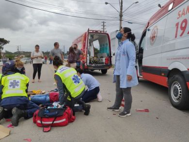 O condutor da moto foi socorrido e encaminhado ao hospital de Tijucas, já uma mulher que também estava na moto, foi levada ao hospital de Canelinha.