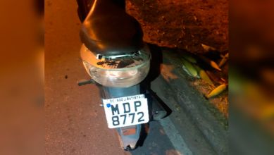 Na abordagem foi feita revista pessoal, mas nada de ilícito foi encontrado. Já em consulta ao sistema foi possível contatar que a motocicleta apresentava sinais de alteração, a placa MDP 8772 pertencia a uma Honda/Biz.