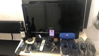 No veículo foram encontrados três televisores, um notebook, dois pares de calçados, quatro garrafas de bebida, uma caixa de som, dois celulares, uma mochila e uma bolsa.