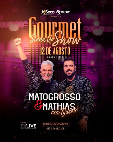 Gourmet Stand Up Show com MATOGROSSO E MATHIAS, dia 12 agosto, na Live em Tijucas!