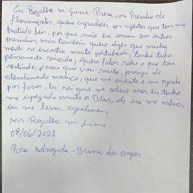 Na carta entregue durante uma visita da advogada nesta terça-feira, 08 de junho, Rozalba também pede ajuda médica e orientação de profissionais.