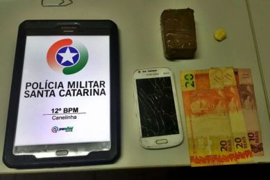 A guarnição da polícia militar em rondas pelo bairro Moura, cidade de Canelinha, nas proximidades de um já conhecido ponto de tráfico, visualizou um homem em atitude suspeita que supostamente poderia estar comprando drogas, a guarnição, em um local estratégico, aguardou o usuário sair do local e realizou a abordagem.