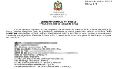 O responsável pela empresa divulgou a imprensa cópias dos documentos que comprovam a ficha limpa do foragido, em Santa Catarina, o que fica contraditório com o registro do apenado no estado gaúcho. O proprietário da empresa de vigilância explicou que não tem como empresas ou pessoas comuns, ter acesso a esse tipo de informação.