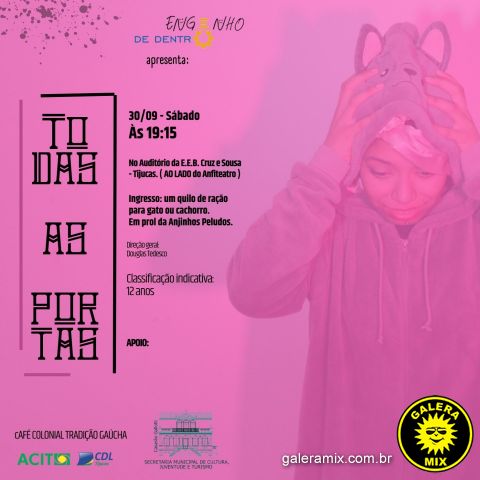 Mais um curso básico de teatro do Engenho de Dentro chega ao fim. Marcando um novo trajeto na vida dos participantes, a formação de seis meses finaliza dia 30/09 com a apresentação dos alunos formandos. No espetáculo, monólogos e duetos trazem os mais diversos temas, angústias, paradigmas e estados do ser humanos em personagens criados pelos próprios participantes. Com início às 19:15, a apresentação é no Auditório da escola Cruz e Sousa, no centro de Tijucas, ao lado do Anfiteatro Leda Regina. No curso, uma oportunidade gratuita da Cia Teatral Engenho de Dentro, houve a oportunidade de conhecer os elementos básicos desta arte milenar. Com classificação indicativa de 12 anos, a apresentação tem o ingresso com valor beneficente: um quilo de ração para gato ou cachorro, ao qual será revertido para o grupo Anjinhos Peludos que luta pela causa animal em Tijucas. Desde 2018 promovendo o despertar através da formação na arte, o Engenho de Dentro convida a todos para prestigiar mais esse trabalho repleto de carinho e significados. Mais informações através do perfil @engenhodedentro.teatro e whatsapp: 48996419060