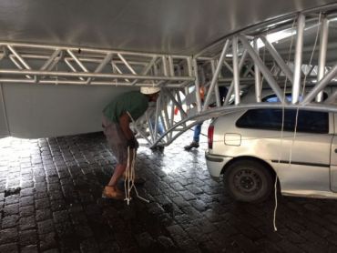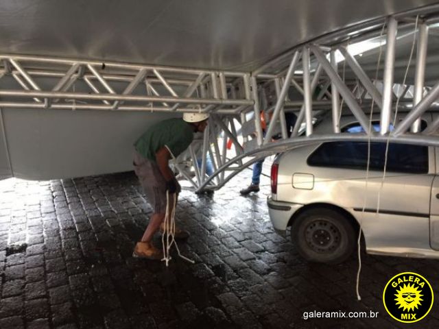 Na manhã deste sábado (30), ocorria a desmontagem da tenda. A assessoria da Oktoberfest informou que a empresa responsável pela montagem foi contratada via licitação e vai se responsabilizar pelos danos aos carros.