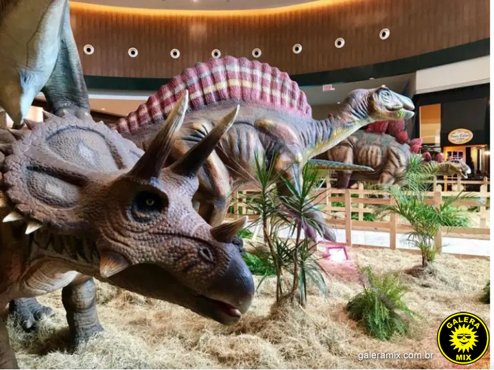 Dentre as atrações está o temível Tiranossauro Rex - um gigante de mais de 6 metros de altura e cerca de 60 dentes, o Gigantossauro - maior animal terrestre carnívoro da história, e o Braquiossauro - um dos dinossauros mais altos que já existiram. Além dos animais, o público poderá se divertir no quiosque de realidade virtual, na piscina de bolinhas (consultar valores no local) e tirar fotos com os seres pré-históricos.