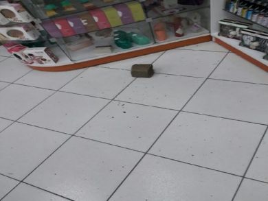 Diante das informações os policias se deslocaram ao local, onde fizeram contato com a proprietária da farmácia CENTROMED, relatando que foi informada por terceiros que haviam quebrado a porta de vidro com uma pedra e que após uma breve vistoria constatou que haviam furtado certa quantia em dinheiro do caixa.