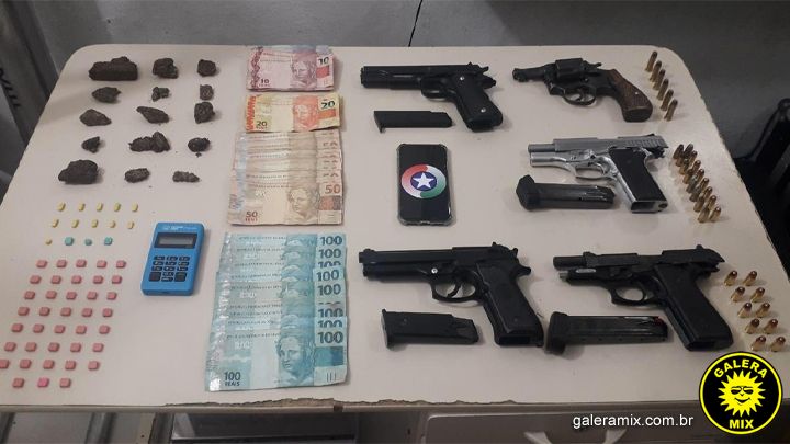 Durante o cerco um homem pulou a janela do segundo andar e caiu em meio ao campo aberto junto com uma pistola, ele foi detido. A pistola tinha numeração raspada e estava carregada com 10 munições. Outra arma, um revólver calibre .38, sem numeração, carregado com 06 munições, também foi arremessado pela janela.