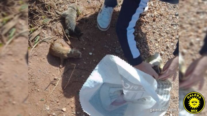 Na manhã desta terça-feira (5), moradores do Bairro Cobre, em Canelinha, encontraram filhotes de cachorro quase mortos dentro de um saco pendurado em uma árvore de uma área de mata.