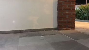 No local foi localizado um recipiente de vidro que foi atirado pelos criminosos. O material estaria carregado de gasolina, mas a explosão não chegou a danificar o prédio. Apenas uma janela lateral apresentava marcas do fogo e vidros quebrados pelo chão.