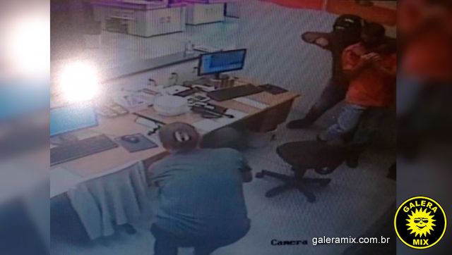 Câmeras de videomonitoramento registaram a ação criminosa. O masculino trajava jaqueta de couro preta, calça jeans e capacete.