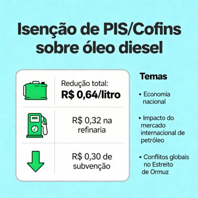 O Governo Federal anunciou, nesta quinta-feira (12), a isenção das alíquotas de PIS/Cofins incidentes sobre o óleo diesel. A decisão, que será oficializada via decreto presidencial, elimina os únicos tributos federais cobrados sobre o combustível, resultando em uma redução direta de R$ 0,32 nas refinarias e mais R$ 0,30 de subvenção, totalizando uma redução de R$ 0,64/litro. A iniciativa busca proteger a economia nacional diante da escalada de preços no mercado internacional de petróleo.