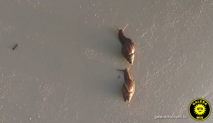 Diversos caramujos-africanos foram encontrados por moradores da rua José Marchi, em Tijucas. Os moluscos estão aparecendo em grande quantidade pelo bairro Universitário.