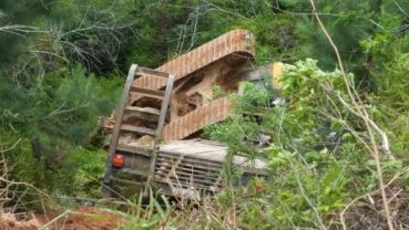 Um caminhão que transportava uma máquina escavadeira perdeu o controle e caiu em uma ribanceira às margens da rodovia. Com o impacto a máquina tombou sobre a cabine do caminhão deixando duma vítima fatal e uma segunda presa às ferragens. Os nomes das vítimas ainda não foram divulgados.