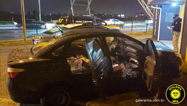 Por volta das 22h, o carro, com placas de Curitiba/PR, foi abordado no quilômetro 121. No interior do veículo foram localizados dezenas de equipamentos elétricos e hidráulicos.