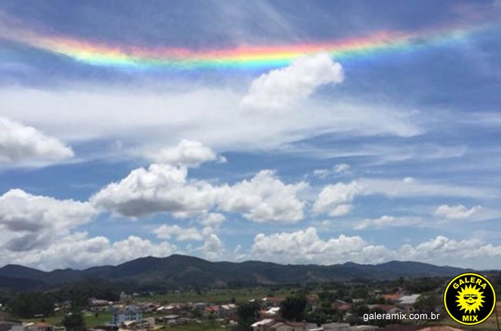 Quem olhou para o céu na região de Tijucas e do Vale do Itajaí na manhã e tarde desta segunda-feira (26) foi surpreendido por um lindo arco-íris. O fenômeno, que atraiu diversos olhares, trata-se na verdade de um halo solar. Ou seja, uma espécie de arco-íris em torno do sol.