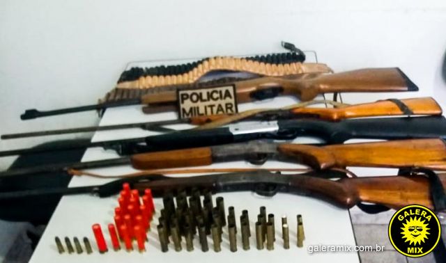 A Polícia Militar apreendeu quatro armas de fogo ilegais e diversas munições na residência de um homem suspeito de ameaçar de morte a sua própria esposa. De acordo com o relatório da PM, durante a realização de uma abordagem na casa após a mulher contar aos policiais sobre as armas, quatro espingardas de caça foram encontradas em posse do autor da ameaça, identificado como Eliseu Constante.