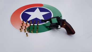 Foi feita abordagem e em buscas foi localizado com o condutor um revólver calibre 32 oxidado. Ele também estava com seis munições intactas, além de outras quinze munições no porta-luvas do automóvel.