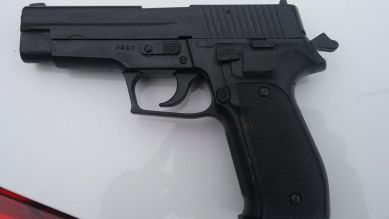 A guarnição foi atrás do veículo vindo abordar o mesmo na rua João Vicente de Souza, após revista, constatou-se que o condutor estava em posse de um simulacro de arma de fogo de cor preta tipo airsoft. A guarnição fez os procedimentos de trânsito guinchando o veículo por licenciamento em atraso e não possuir CNH além de lavrar termo circunstanciado pela posse do simulacro e ameaça.