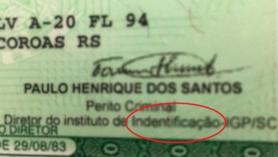 Erros ortográficos, foram percebidos, entre eles “instituto de Indentificação”.