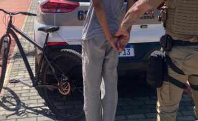 Era aproximadamente 02h30 desta terça-feira, 13, quando um furto foi registrado na rua Guaxinim, no bairro Zé Amândio, em Bombinhas. No local a vítima informou que sua bicicleta foi furtada e que nas imagens de câmeras de segurança era possível ver o rosto do autor. O suspeito já é conhecido no meio policial e, inclusive, já havia sido preso por um caso semelhante há dois meses.