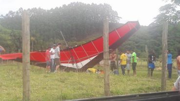 Por volta das 11h30min deste domingo (3),. Um piloto de asa-delta, que participava de uma competição que estáva acontecendo no bairro Galera, em Canelinha, acabou sofrendo uma queda.